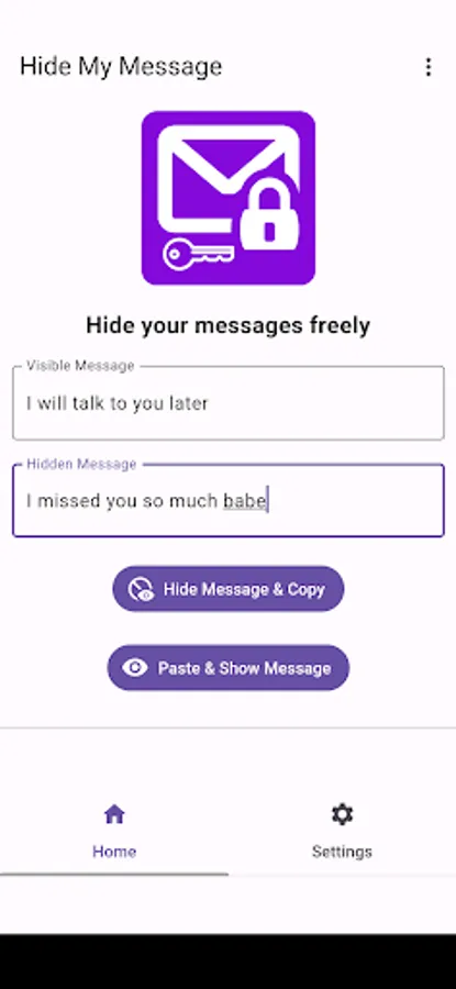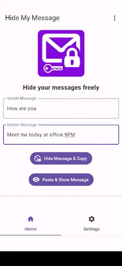 This can be done by copying the visible message from the source sent to it before then go to our app and press on “Paste & Show Message” button it will automatically paste the message you copied and magically show the hidden message to you.