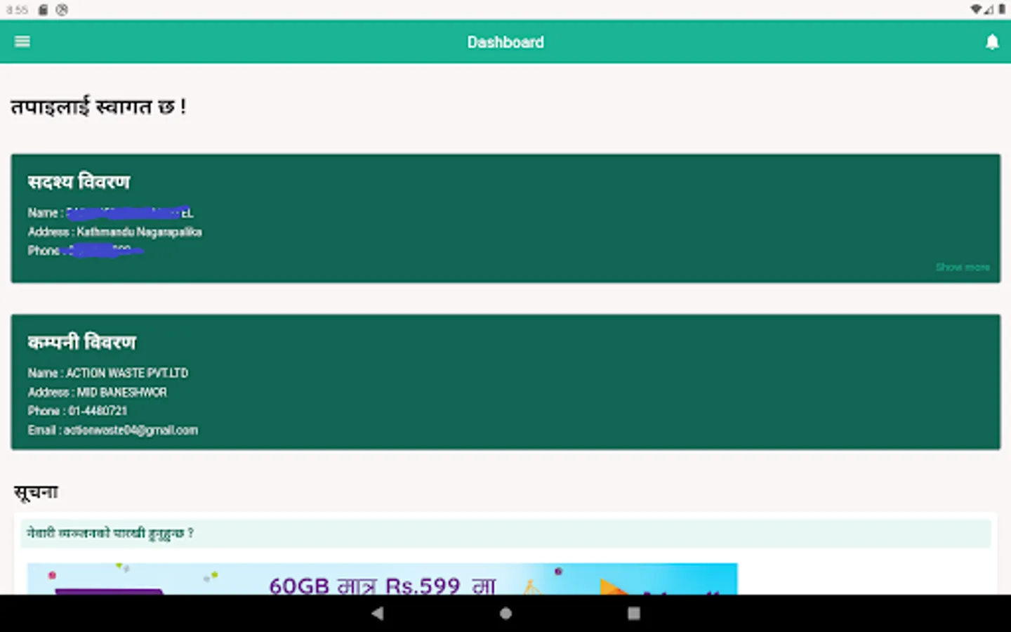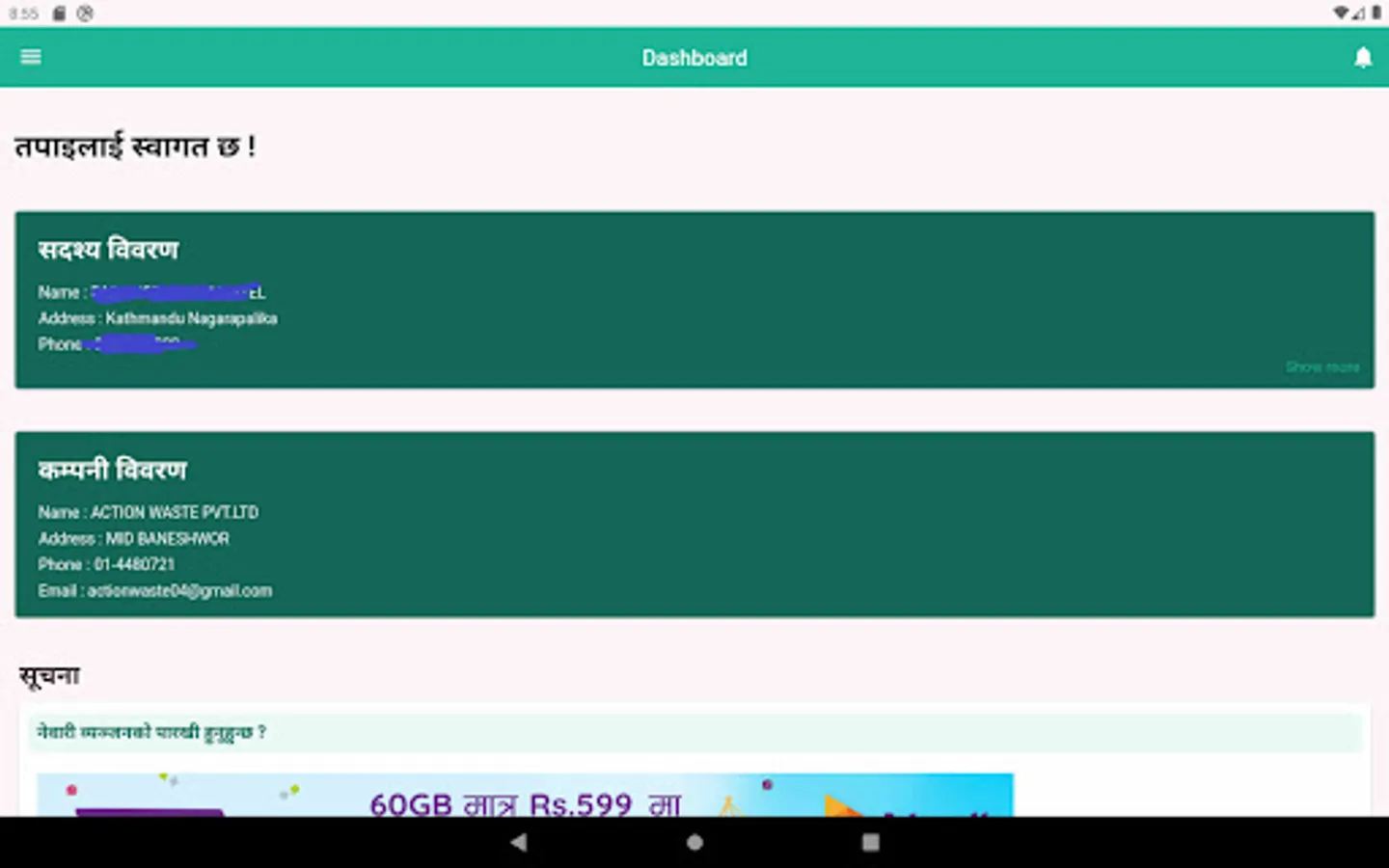 This application is applicable to all household, business, hotels, hospital etc. to see the schedule of vehicle coming for Waste. We can know if the vehicle is coming for which type of waste collection (Indicated by vehicle icon color).