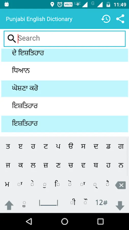 This app provides English meaning to Punjabi words
