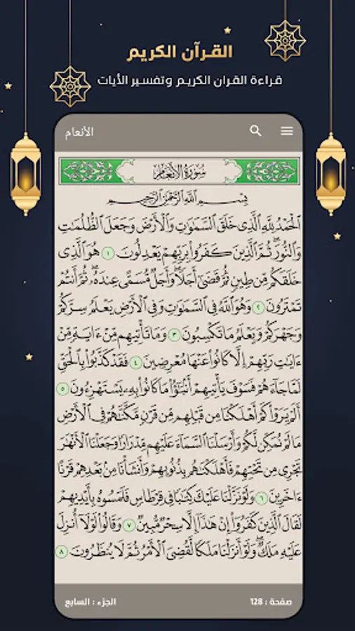 1- الاستماع الى القران الكريم بصوت اكثر من 130 قارئ للقران مع خاصية تحميل الايات لتشغيلها بدون نت