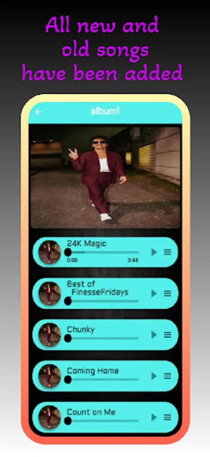 Enjoy the best music with Bruno Mars songs 2023, it is easy to use and has a very simple and user-friendly design.
