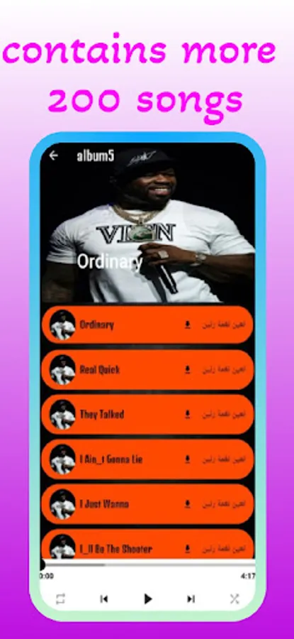 Free and new version of the most beautiful songs of 50 Cent All Songs 2023. Get the memory of your phone, download the app for free. The ad includes a collection of the best and most famous songs of the new artist 50 Cent