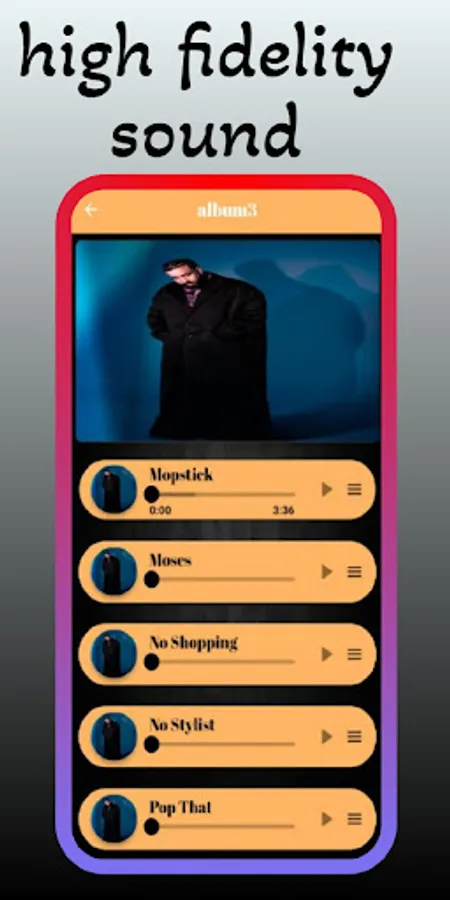 in this application you can listen to the best and latest songs from French Montana music 2023 app that update new songs automatically without you updating the app. A collection of songs from French Montana music 2023 that you can play and sing.