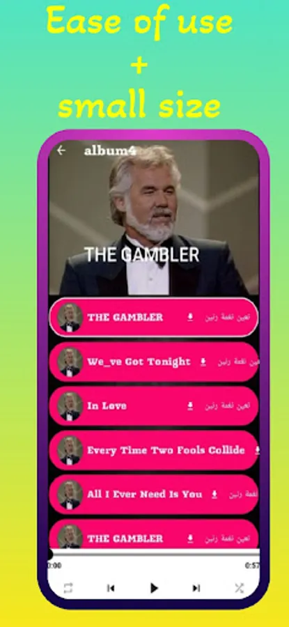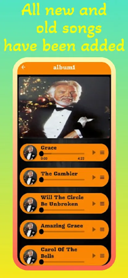 in this application you can listen to the best and latest songs from Kenny Rogers Songs 2023 app that update new songs automatically without you updating the app. A collection of songs from Kenny Rogers Songs 2023 that you can play and sing.