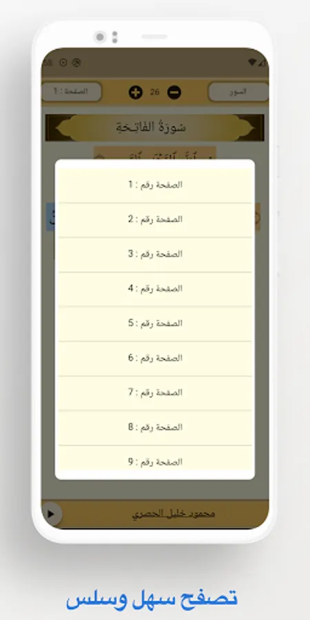 - A selection from three reciters (Muhammad Siddiq Al-Minshawi - Mahmoud Khalil Al-Hosari - Ali Abdul Rahman Al-Hudhaifi)