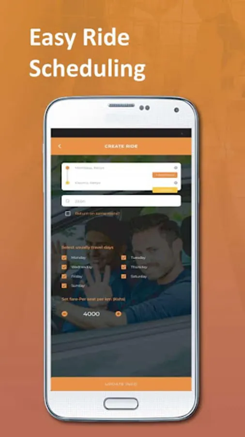 Car journeys are cheaper now because you share costs with passengers. Currency is automatically set based on physical location. If you're about to embark on a car journey, offer a seat and passengers will make a booking via Saafiri.