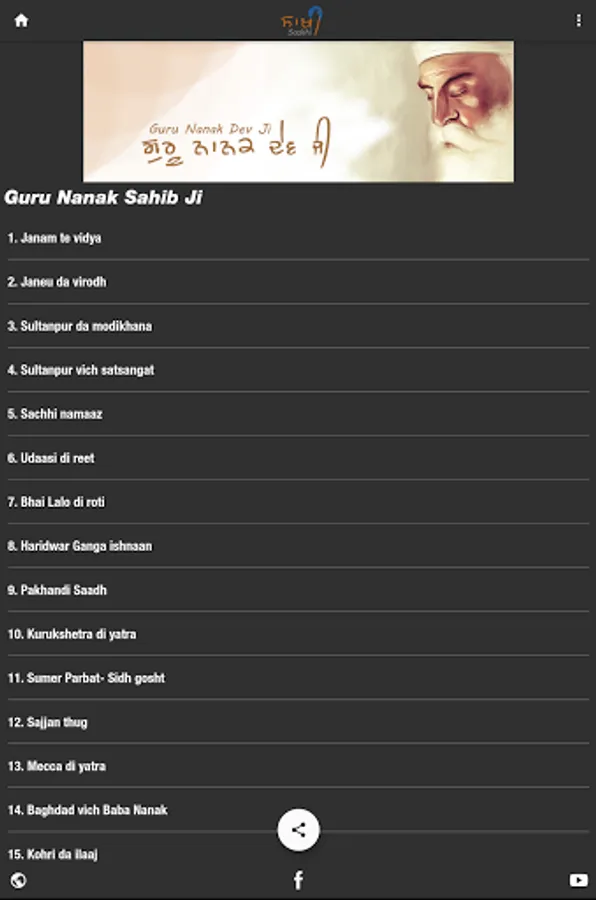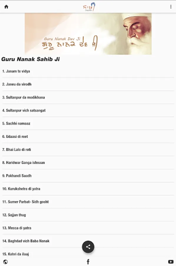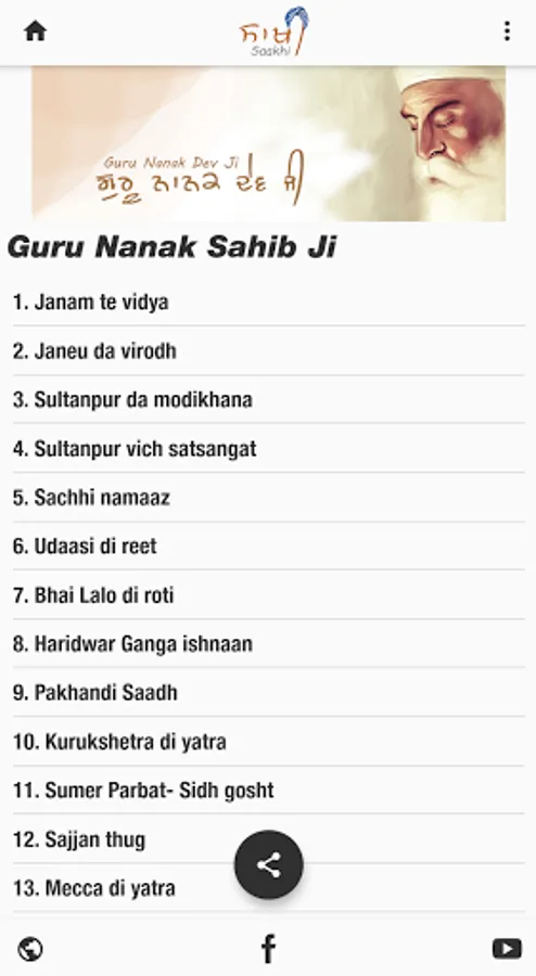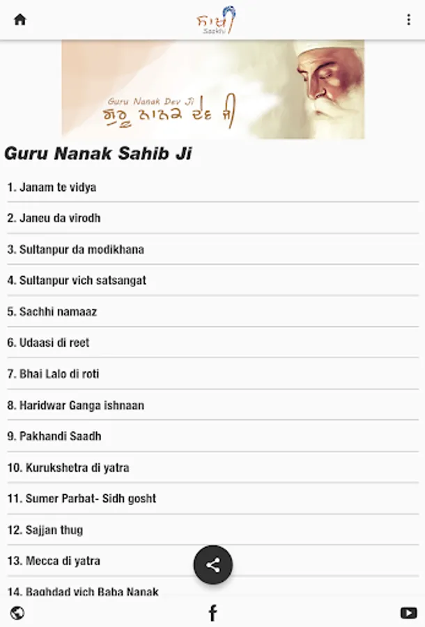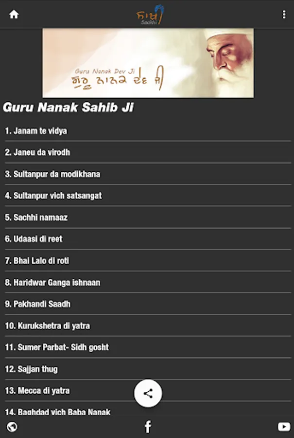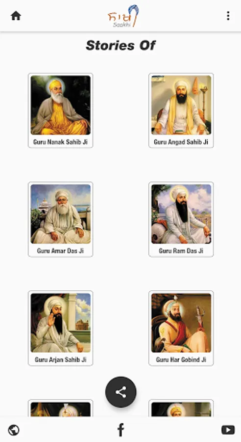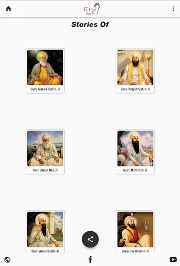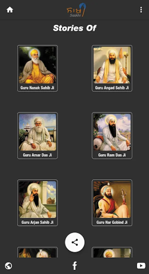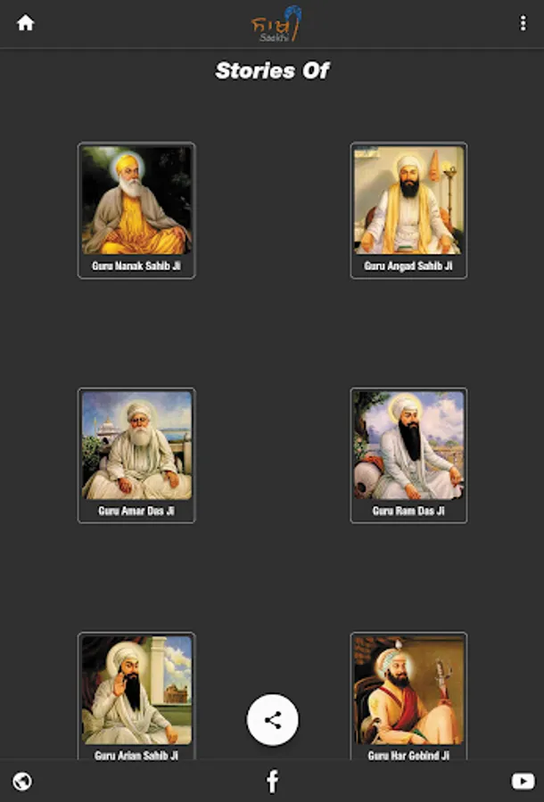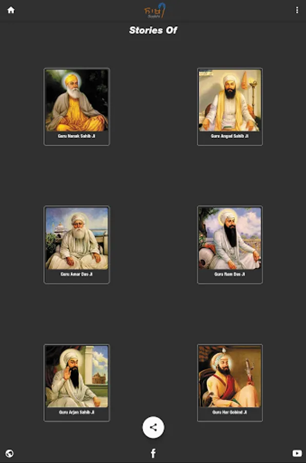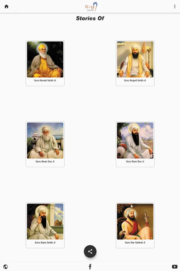 1) Short audios & video stories on the life history of 10 Sikh Gurus: Guru Nanak Dev Ji, Guru Angad Dev Ji, Guru Amar Das Ji, Guru Ram Das Ji, Guru Arjan Dev Ji, Guru Har Gobind Ji, Guru Har Rai Ji, Guru Har Krishan Ji, Guru Tegh Bahadur Ji & Guru Gobind Singh Ji.