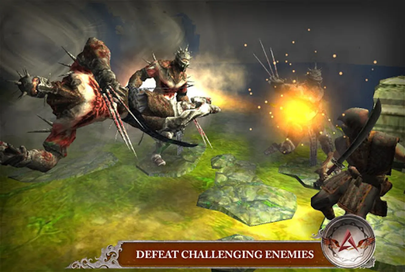 Use the virtual joystick to control the character walking, looking for the key to open the gates, to find Boss and eventually destroy it... You have to cut, kick, punch, slash through them like a thug or just run. You went through learning kung fu, martial arts, fighting skills, climbing from evil sensei. You are armed with lethal blade sword (Katana), shuriken and other weapons. Your are the best assassin ever so prove your loyalty!