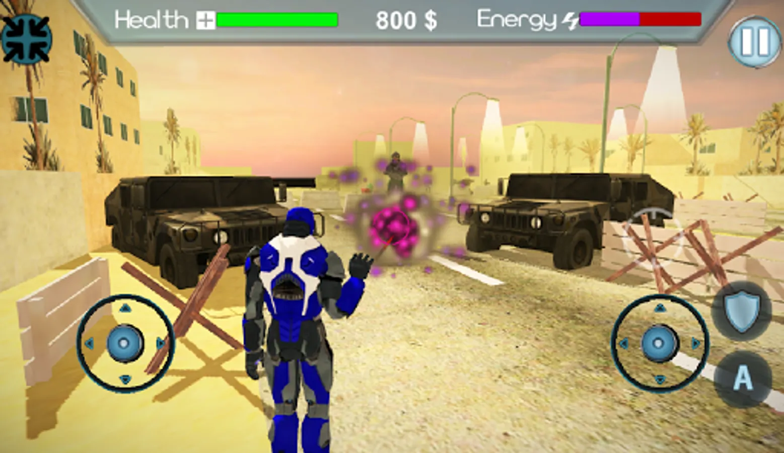 You can upgrade your armor, speed and power from the shop you can buy new technology! In order to avoid a mass destruction and keep the the city safe you have to complete all missions.