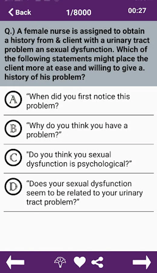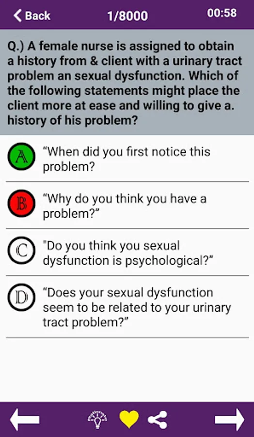 NCLEX-RN Free App provides you an ultimate option to share questions with friends and also you can post to Facebook, twitter, WhatsApp, etc...