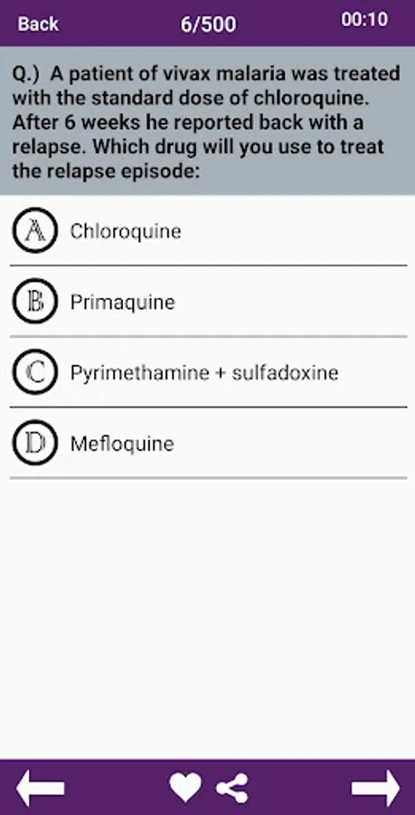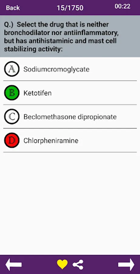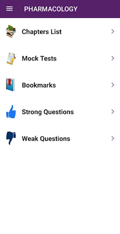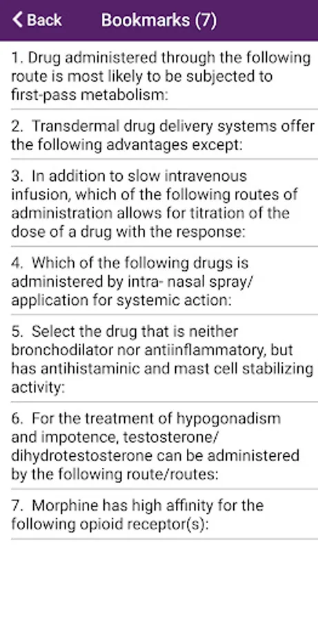 Pharmacology Quiz provides you one more feature 'Bookmark' for bookmark your favourite questions while playing quiz.