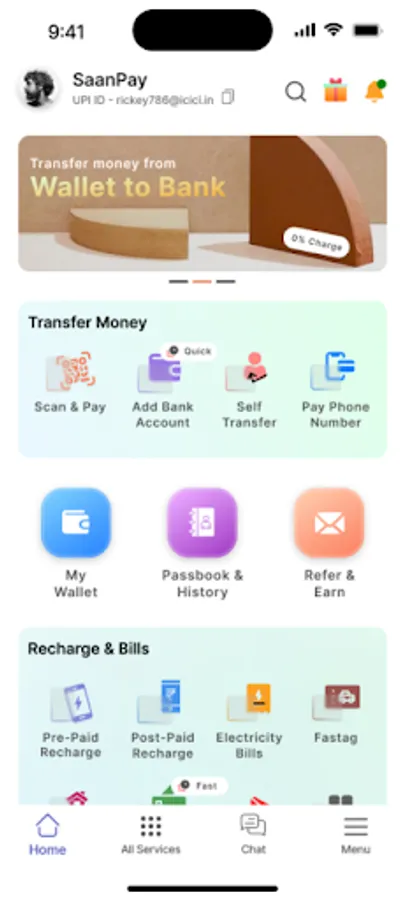 We make money transfer simple & quick. Select ‘Transfer to bank’ or ‘wallet transfer’ to make the money transfers
