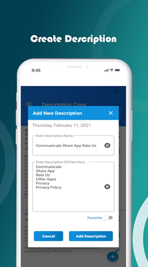 The most powerful tool to copy description and past it to the app and save it in the device memory with security and privacy.