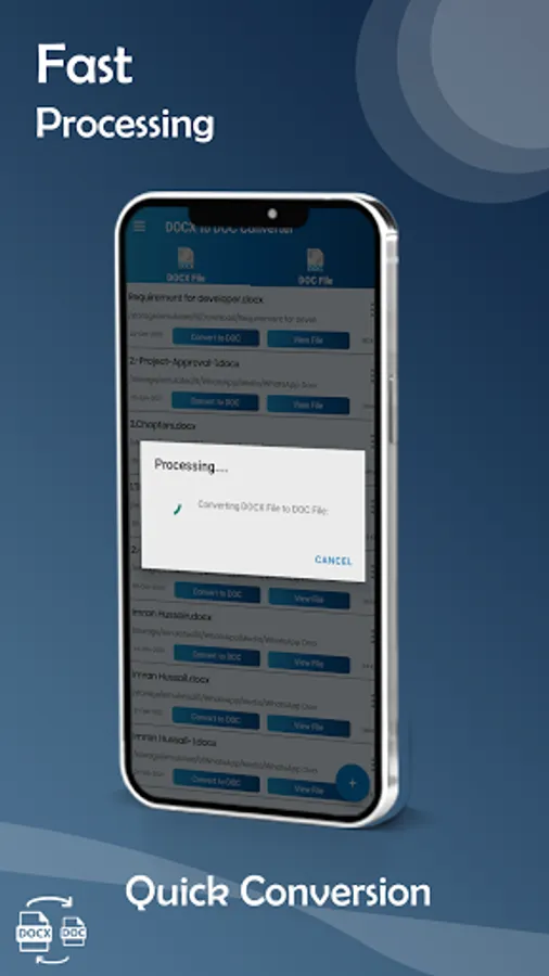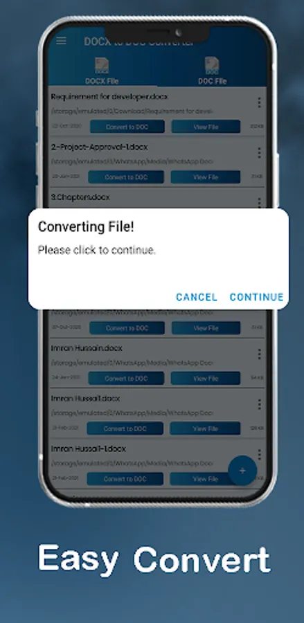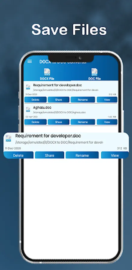 Select your .DOCX file from phone memory, the docx to doc converter and viewer app will convert it automatically to your desired format (doc). It is pretty simple to use the app.