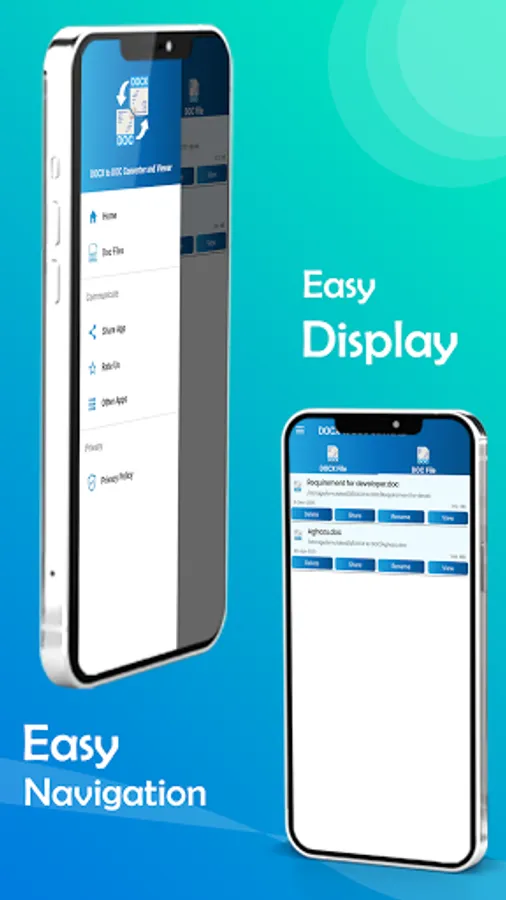 Docx to Doc converter is an app for conversion of one Microsoft word format with extension (.docx) to another Microsoft word format with extension (.doc). The app also has the facility to view your docx or doc file on your device. All your docx/doc files can be browsed in only one single place in seconds without any wastage of time.