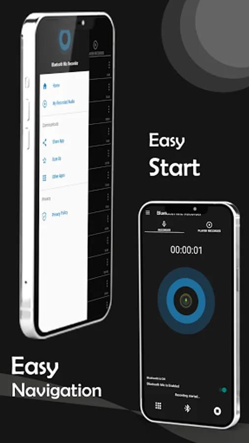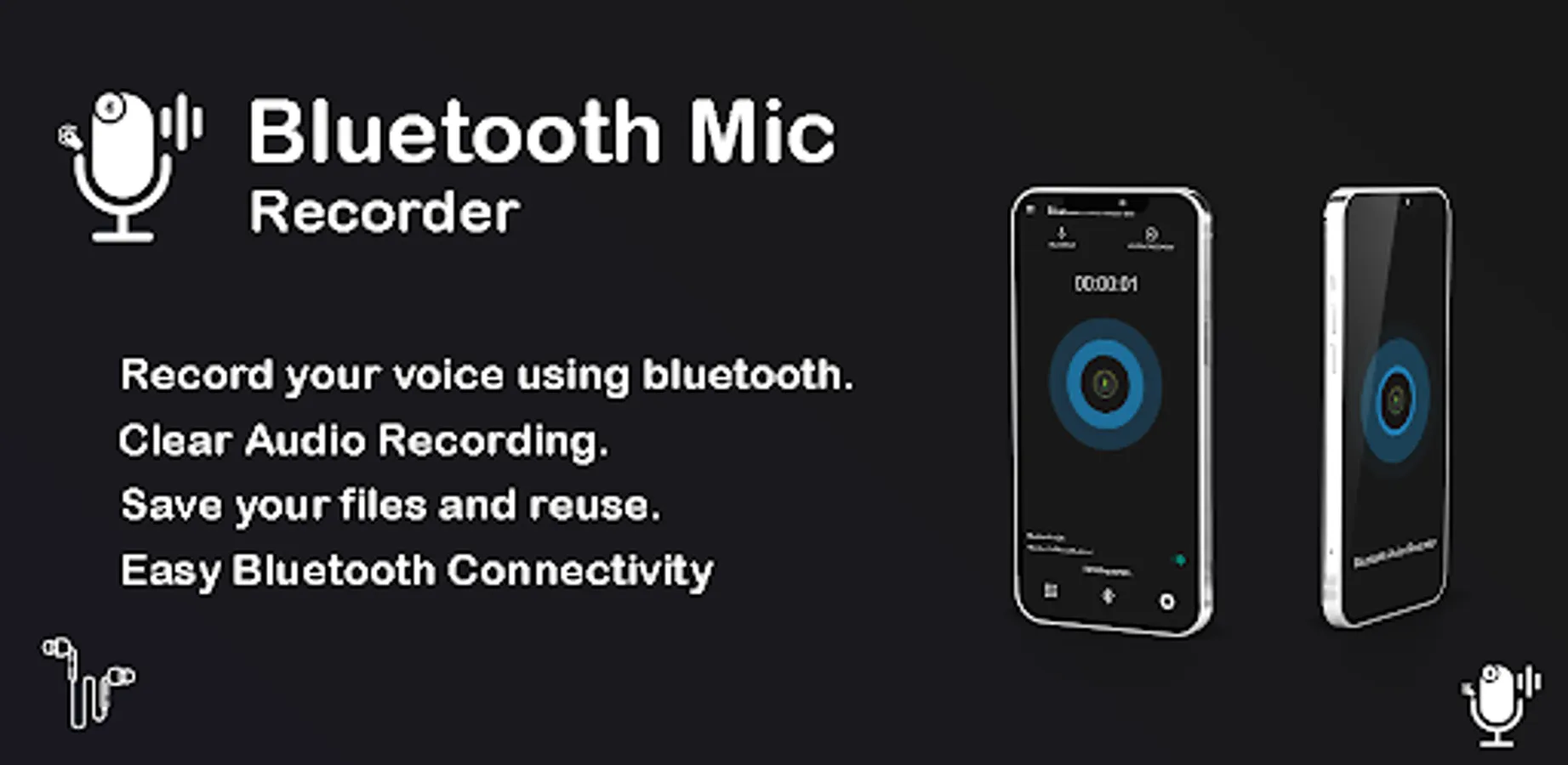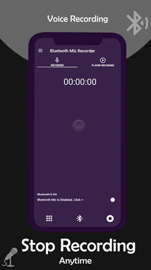 Bluetooth Mic Voice Recorder app record your voice through your Bluetooth mic device. Keep your mobile away from you and use Bluetooth mic device for audio.