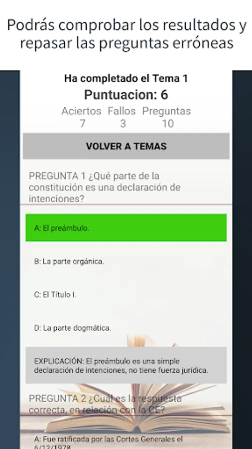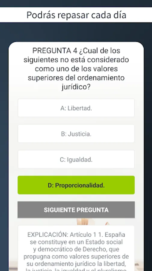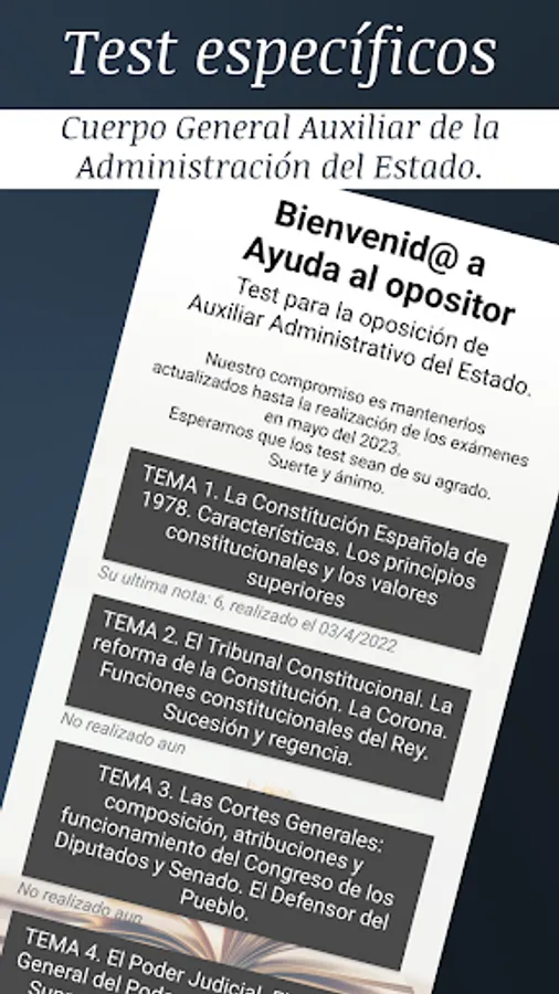 In the apps of Ayuda Al Opositor you will find updated tests, so you don't have to worry about outdated questions that will mislead you on the big day.