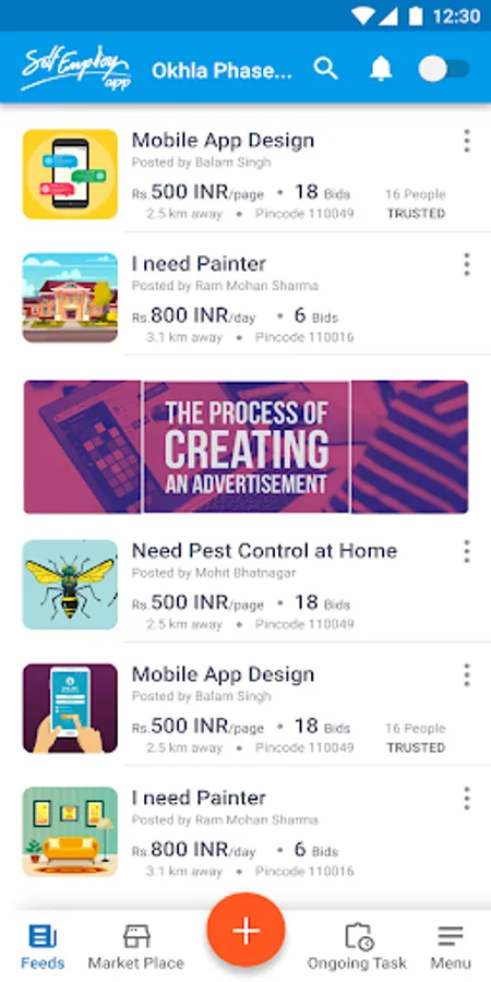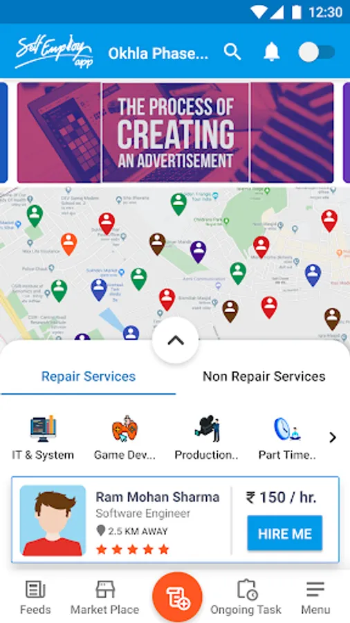 We understand the importance of work, the sole tool that can be altered for self-employed workforce so that they could connect to their neighborhood and explore real time work opportunities around them. There is a need for proper direction of development, a direction that is accessible and approachable for all, the rich or the poor, urban living or rural living, young or the old, employed or the unemployed, in service or retired, self-employed women or housewives, students or part time workers. This application has been designed and created as a tool to provide this direction.