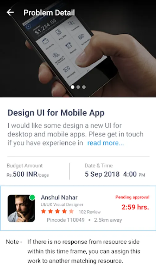 Through this application of ours, we are exploring the possibility of blending in technology with innovation, providing unique features that would help to solve daily needs and real time problems and thus, help the common man in maintaining pace with time.You can just click and post the description of what needs to be done, by what time as well as stating how much are you willing to pay for the service. You will receive an early response from one of our trusted and verified resource as per your chosen criteria. If the resource is interested they might negotiate and then, accept the bid to help the user. Before accepting the offer, the user can also quickly check the resource profile, read the reviews as per the previous work done. Once the resource gets into action, the user can also track the resource through real time tracking. The user can recommend the same resource to friends and relatives so that they can find a trusted resource for the completion of their required task.