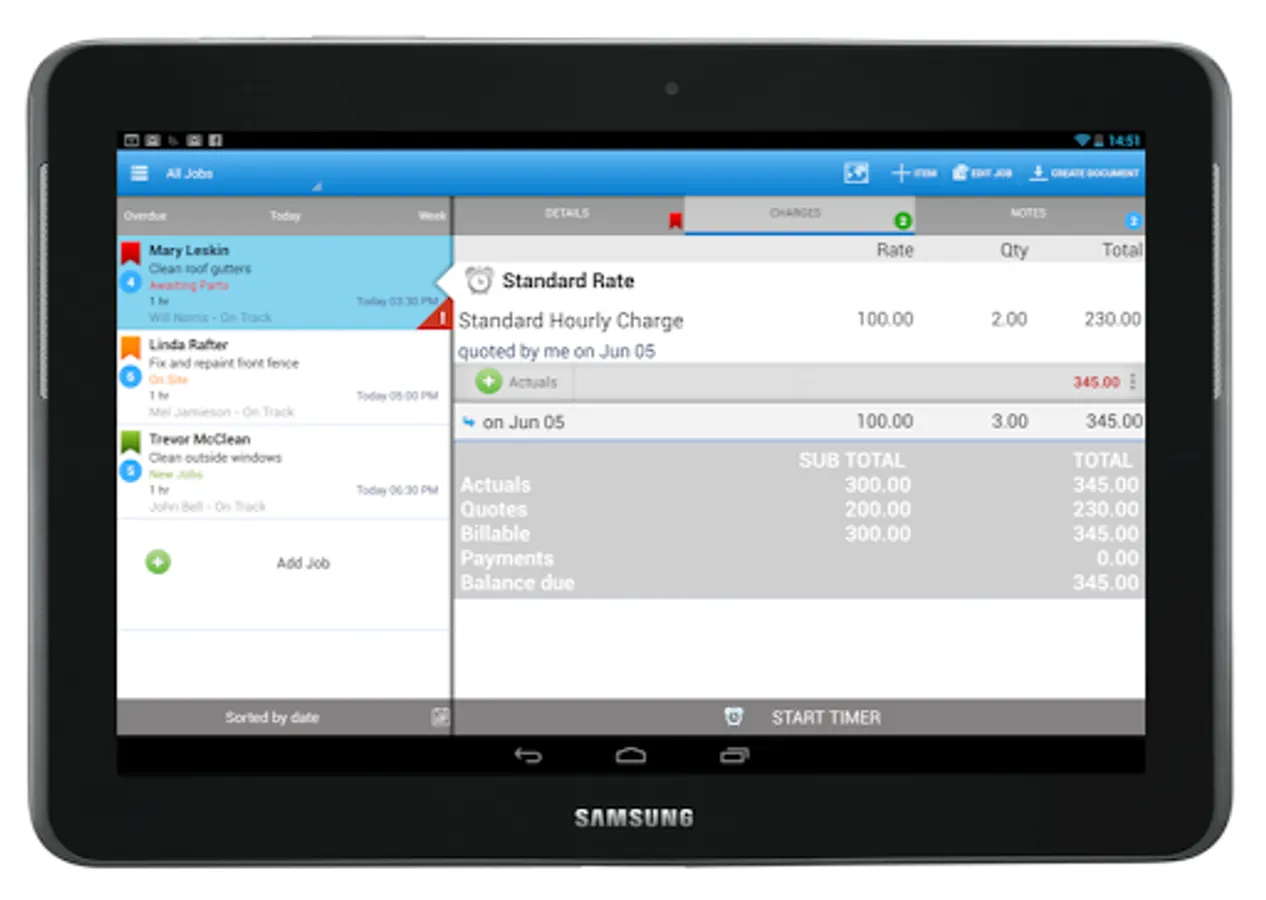 * Job Quoting - Produces beautiful branded quotes instantly.