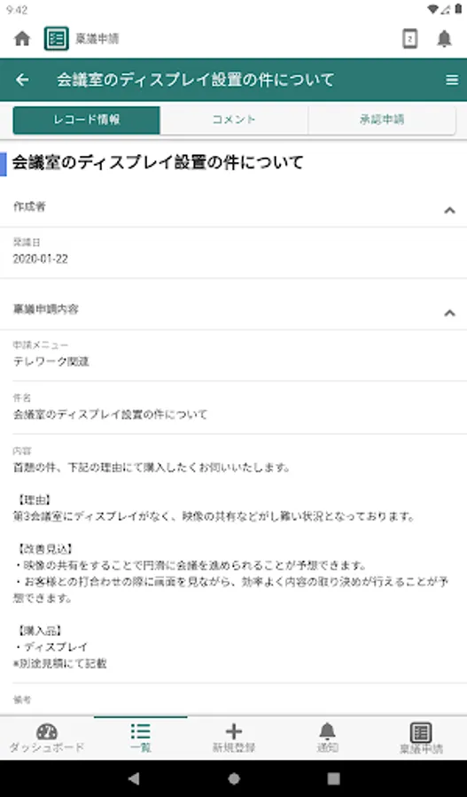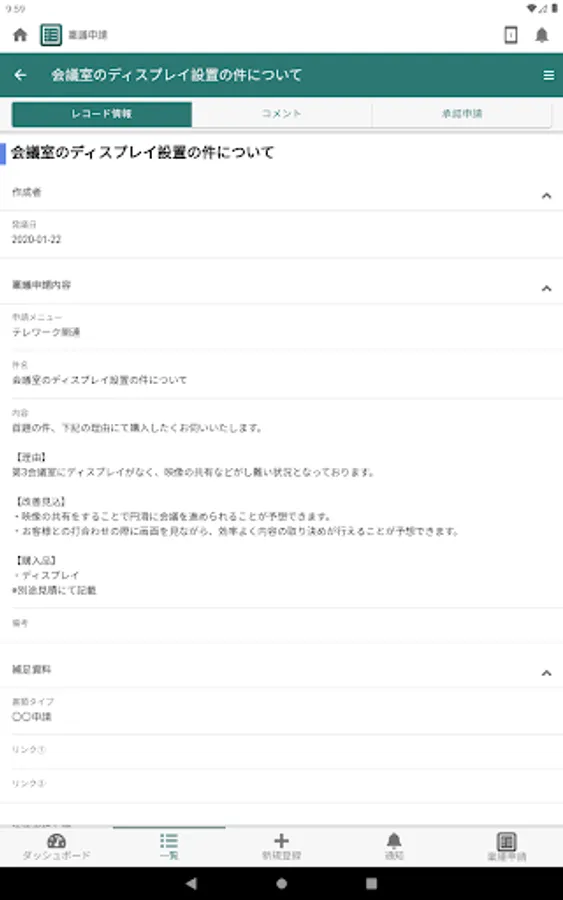 -Approval workflow function: Supports application work such as approval documents.