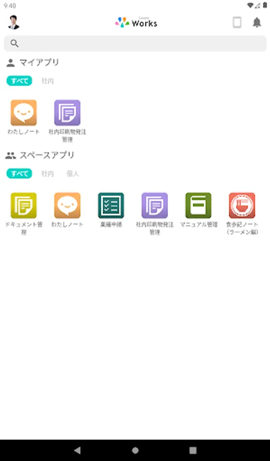 Not only original apps but also apps downloaded from "Works App Store" can be used if you have a "Sasuke Works" account.