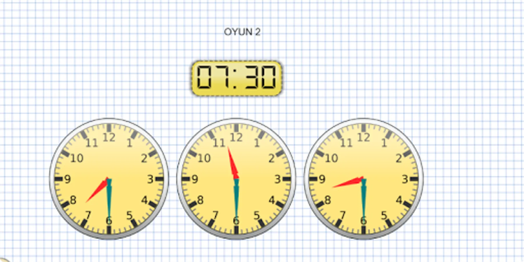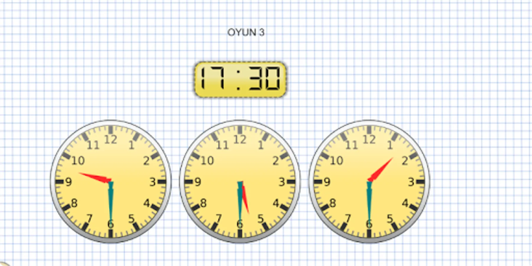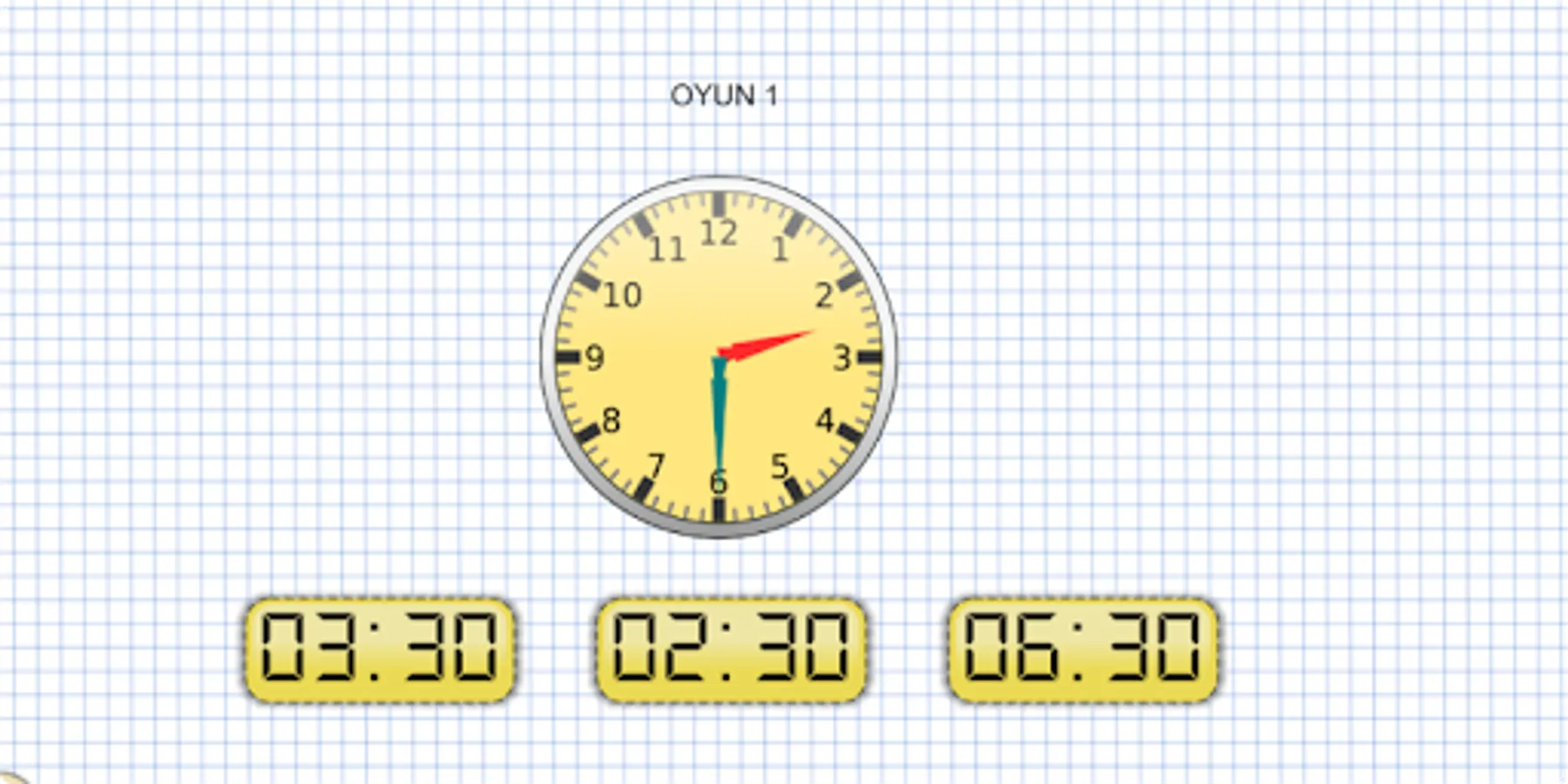 1. To find the desired time in the event, rotate it by holding down the hour and minute hands. Then click the check button. You can practice as many times as you want in this activity.