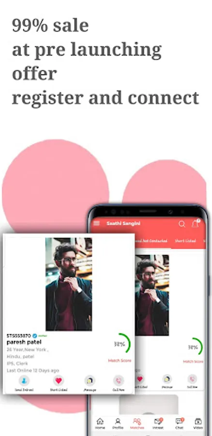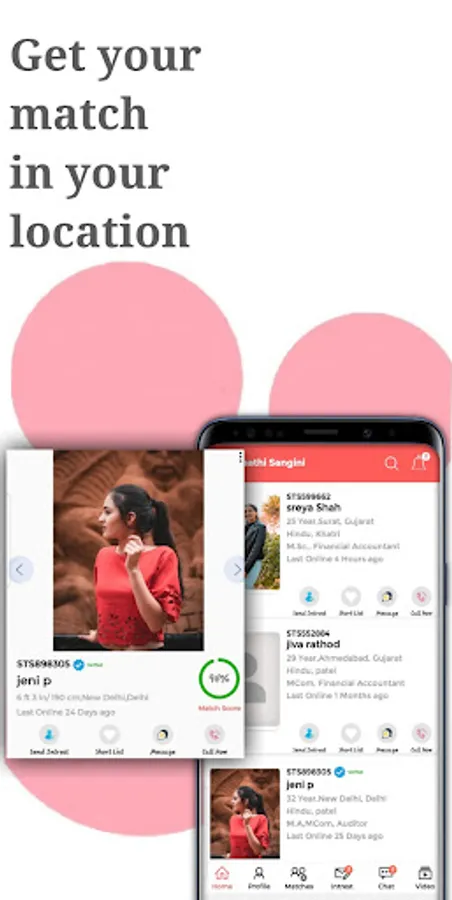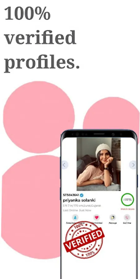 Our matchmaking app only pushes verified profiles and recommends compatible based on their likes, dislikes, interests, values, and intentions.