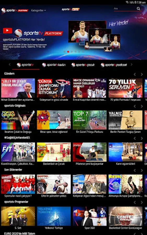 sportstvPLATFORM, where live broadcasts of sportstv and sportstvwomen can also be watched, is distinguished from its competitors with 24-hour reversal in live broadcasts, podcasts, special content for children and women.
