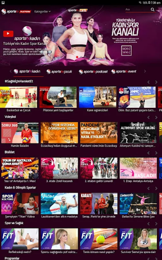 Turkey's First Female Sports Channel, which holds the distinction of being the site of sportstvkadın carrying sportstv platform, pilates, yoga, nutrition, child development, such as sports and fashion and will include content from a woman.