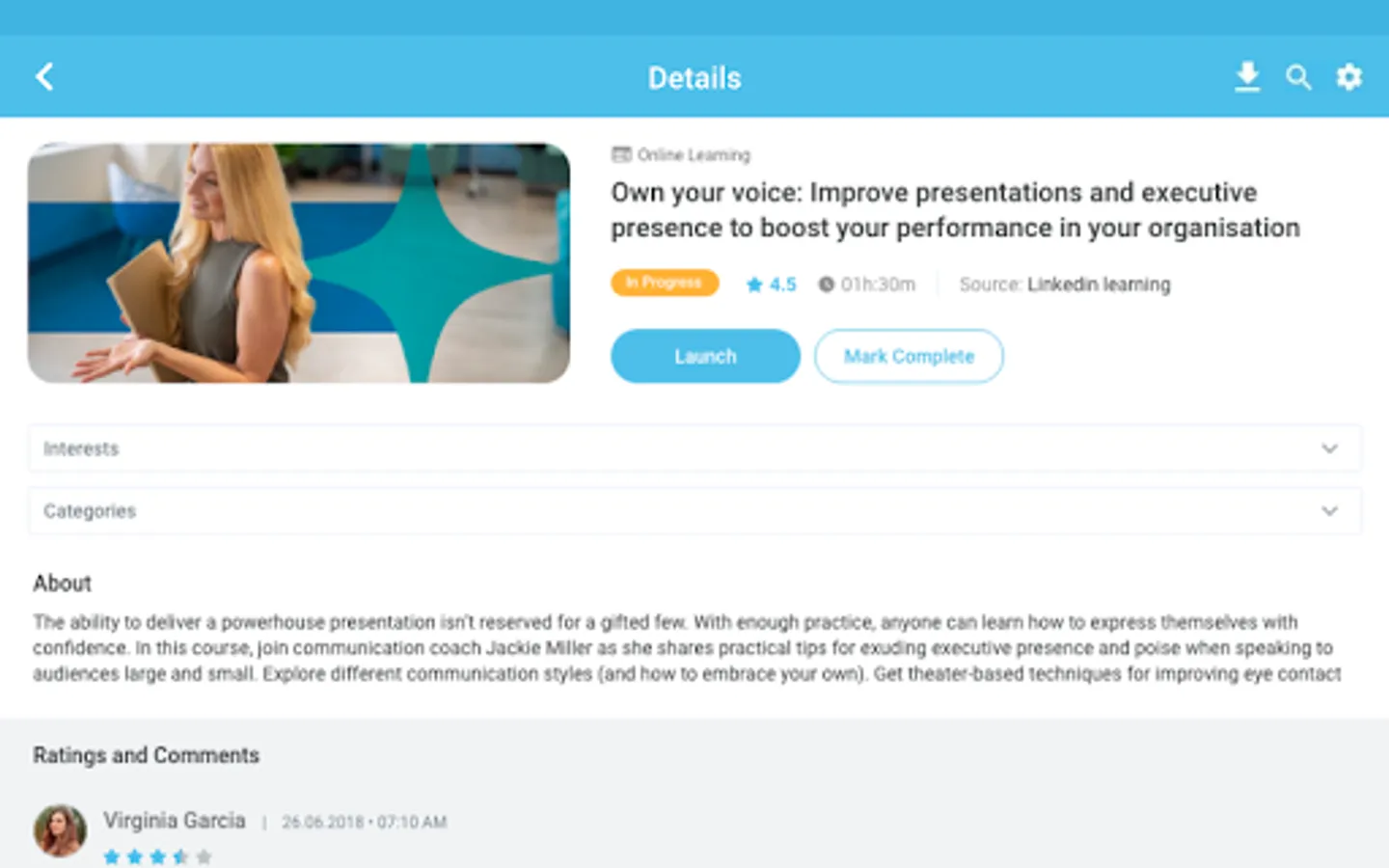 - With the instant progress synchronization between the mobile app and the LMS, switch back and forth between devices seamlessly