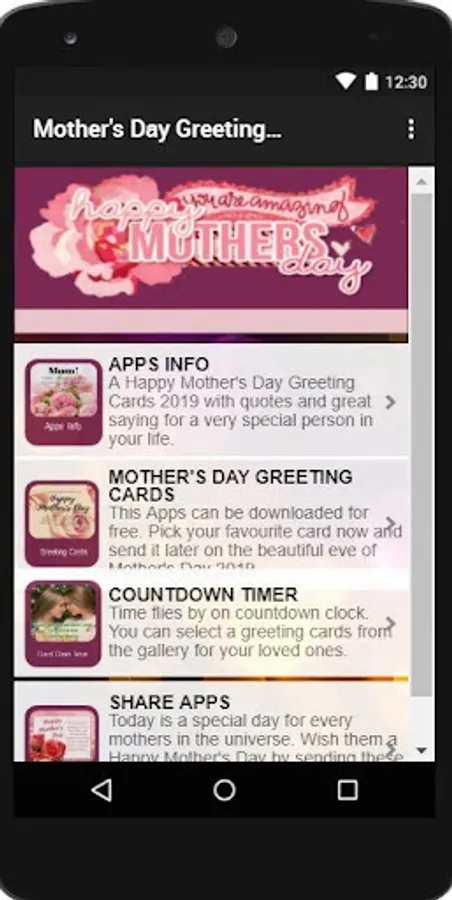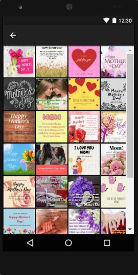 Easy interface! Simply select your favorite Mother’s Day quotes or messages and click share to send them to your mom. It’s easy to express and tell your mom through this Mother’s Day app. Just one touch you can send a beautiful image with loving quotes to her.