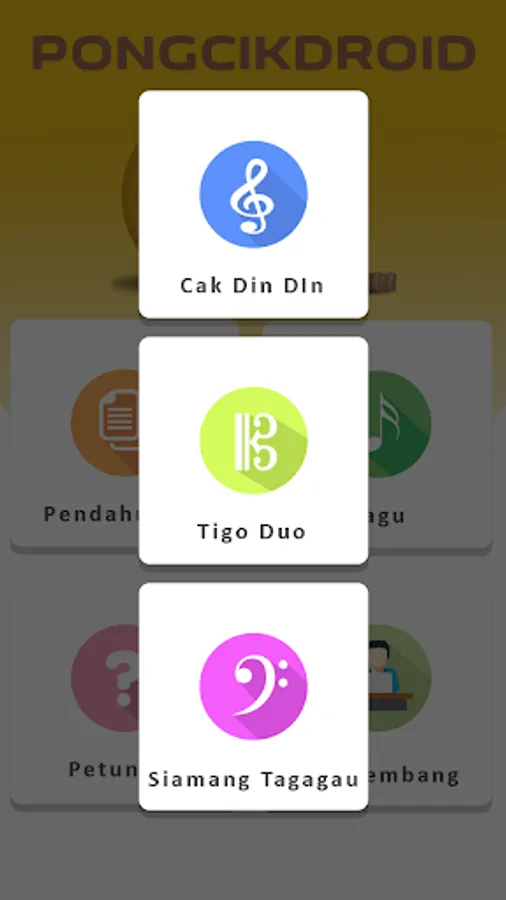 Pongcikdroid is a virtual instrument of talempong pacik Minangkabau traditional musical instrument that was developed for simulations playing talempong pacik and not to replace the actual talempong pacik, the aim is to provide musical experience in general Users who want to understand Talempong Pacik, especially for students in West Sumatra (INDONESIA).