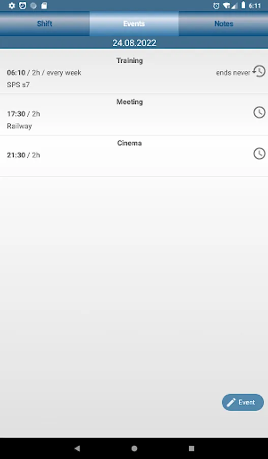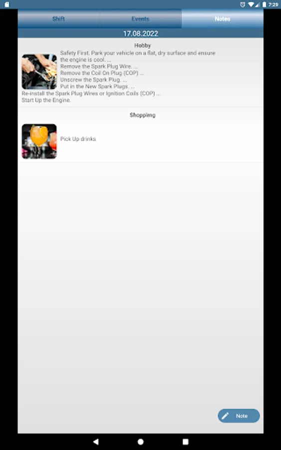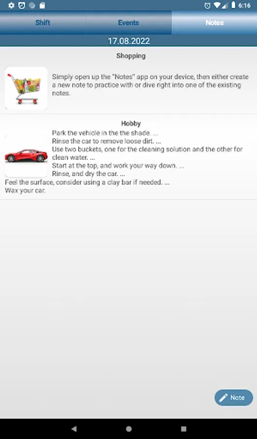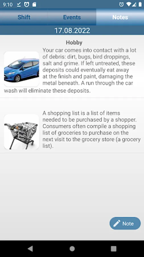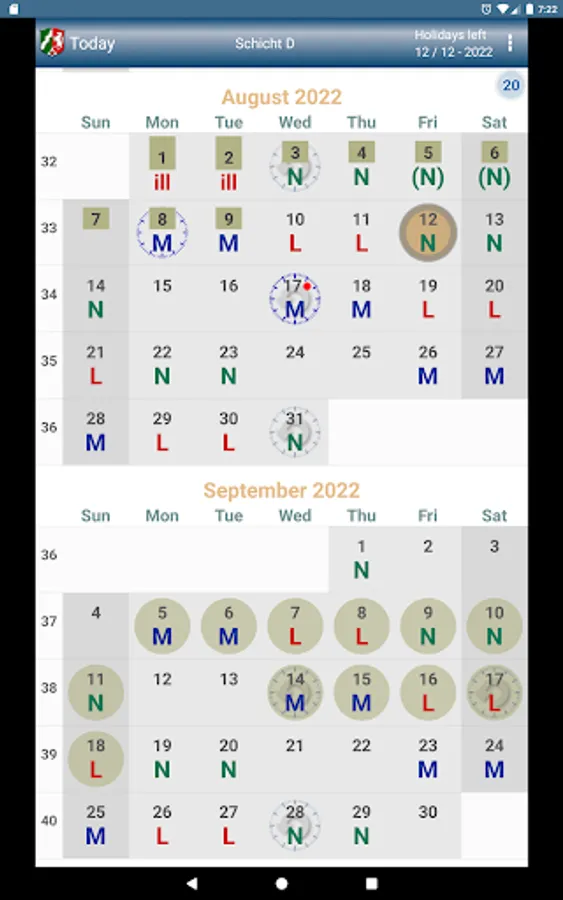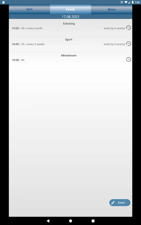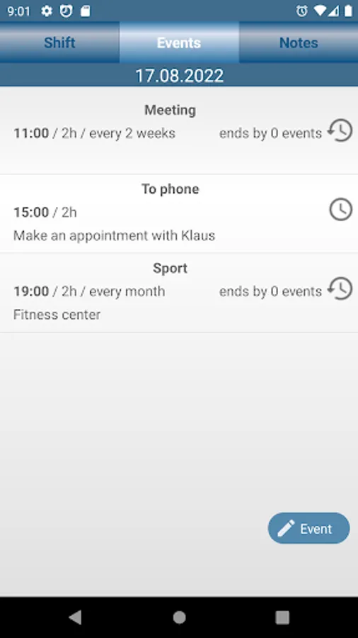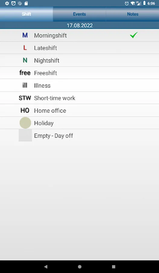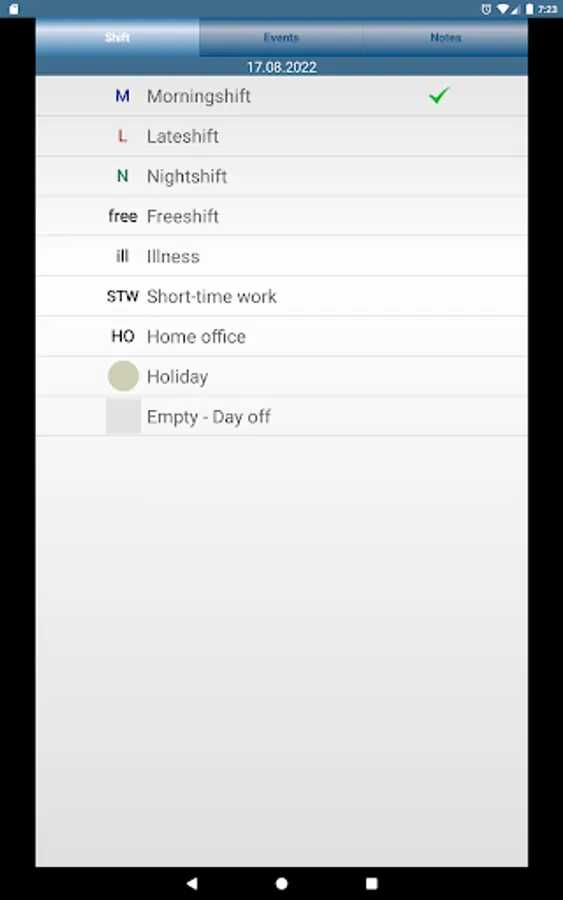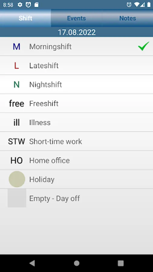 Long-touch or double-tapping on a day of the calendar calls up an editor for appointments, notes and shift-related entries.