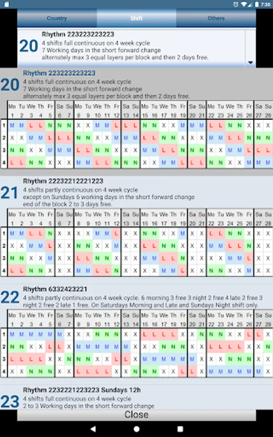 If you can't find what you're looking for, you can use the rhythm generator to create your own shift plan.