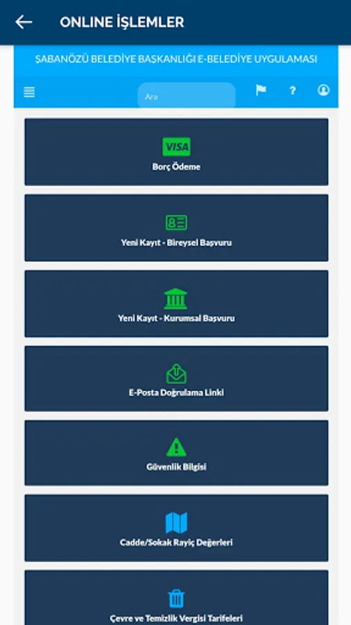 With our online transactions button, you can perform the transactions of the Şabanözü Municipality through the E-Municipality.