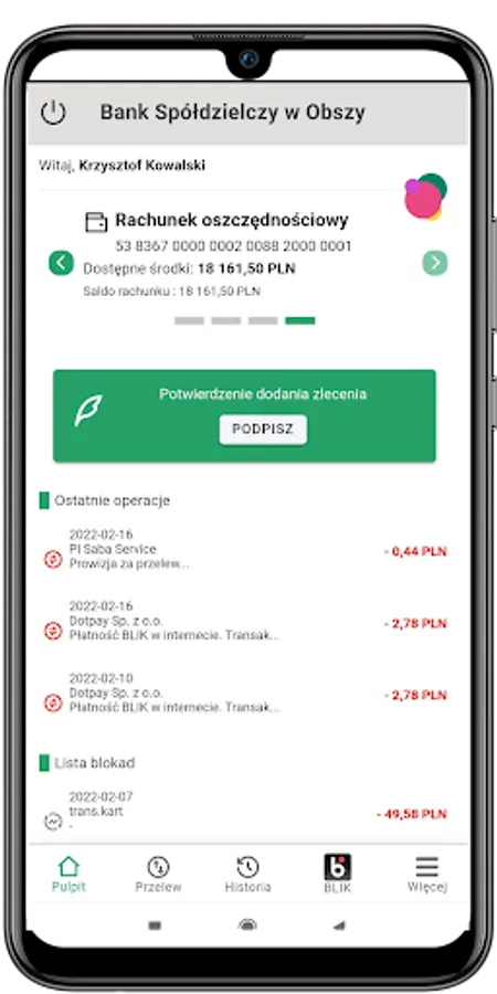Thanks to the application, you can check your account balance, order a transfer and conveniently use BLIK.