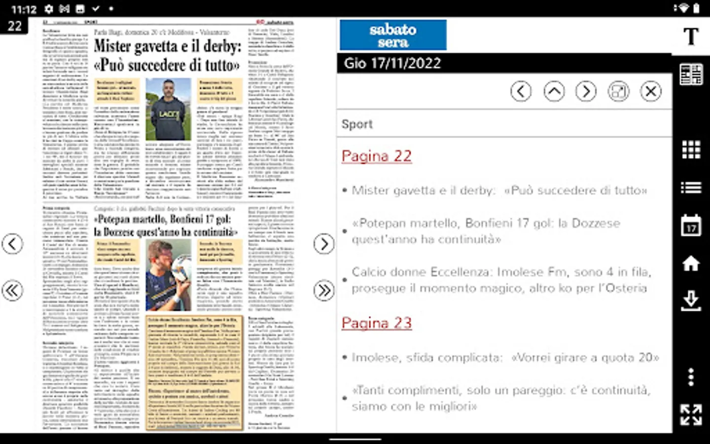 - Elenco di tutte le pagine dell’edizione in modalità anteprima
