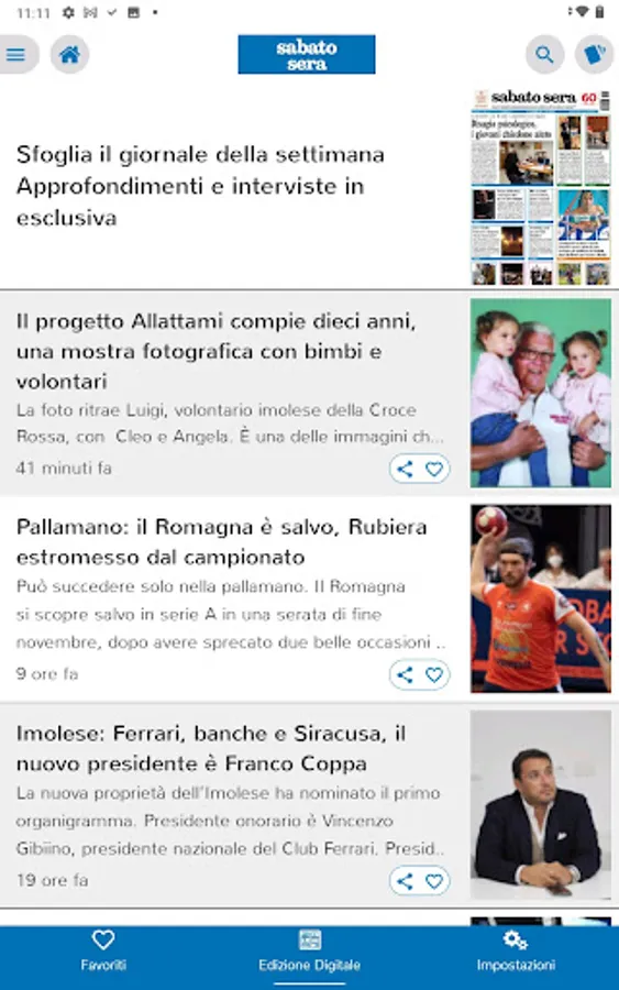 Scarica l'applicazione del settimanale “sabato sera”, notizie da Imola e comuni del Circondario imolese.