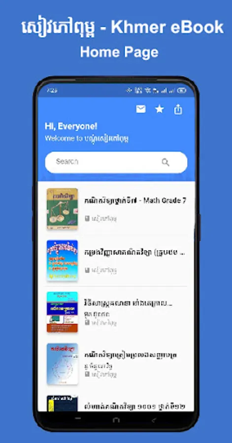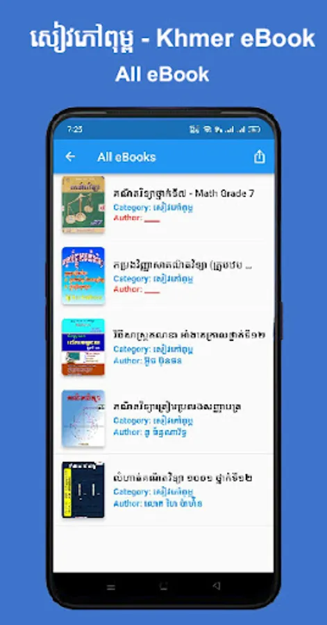 សៀវភៅពុម្ព: យើងបានបង្កើតកម្មវិធីទូរស័ព្ទនេះឡើងដើម្បីចែករំលែកនូវសៀវភៅពុម្ពសម្រាប់សិស្ស និស្សិត ងាយស្រួលក្នុងការសិក្សា និងស្រាវជ្រាវបន្ថែម។ សៀវភៅទាំងអស់នេះយើងបានមកពីការចែករំលែកតាមបណ្ដាញសង្គម យើងសង្ឃឹមថាកម្មវិធីនេះនឹងជួយអ្នកសម្រាប់ការសិក្សាបន្ថែម សូមអគុណ។