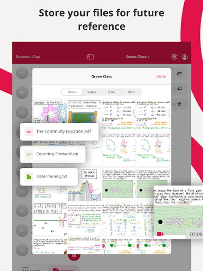 Never lose files • Send multiple file types including images, videos, and documents, all stored securely on the app for future reference.