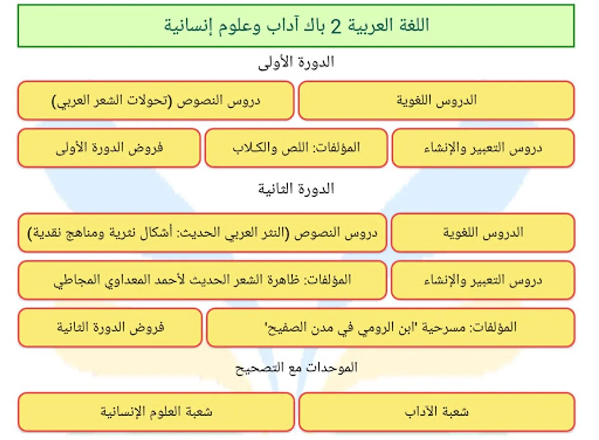 A comprehensive summary of all the lessons of the second Arabic language in the Bachelor of Arts and Humanities course