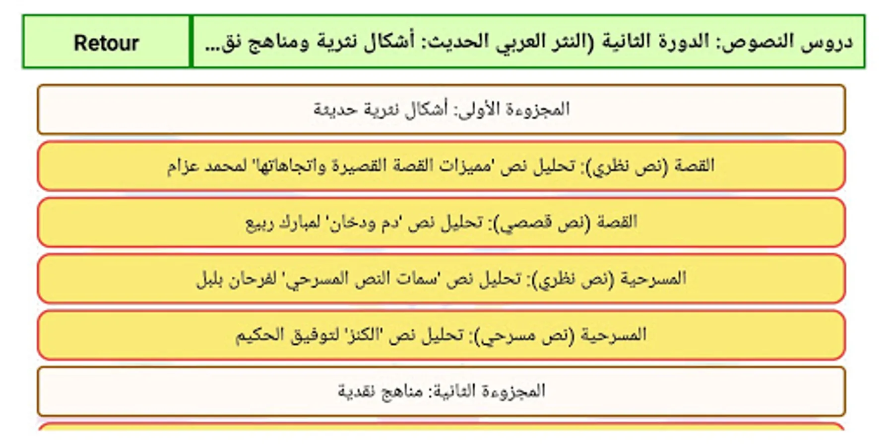 • Text lessons (Modern Arabic prose: prose forms and critical approaches)