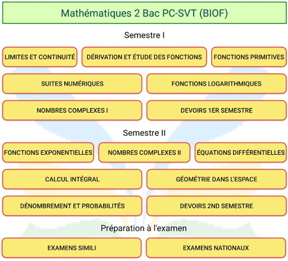 Complete summary of all Mathematics lessons (BIOF) intended for students of 2 Bac PC and SVT.
