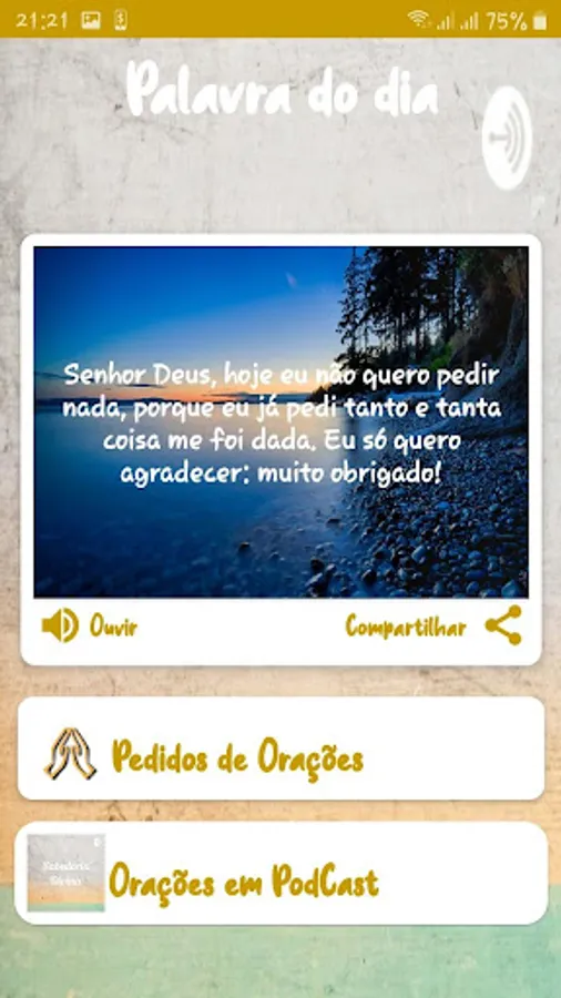 Every day you give beautiful prayers (in TEXT and AUDIO) to seek inner peace, to obtain comfort in times of distress and to find God in small words.
