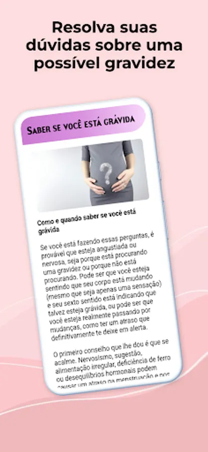 Install the app on your mobile device and it will guide you clearly and precisely to find out how to know if you are pregnant.
