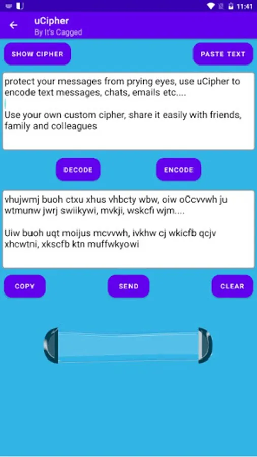 Protect your messages from prying eyes, use uCipher to encode text messages, chats, emails etc....