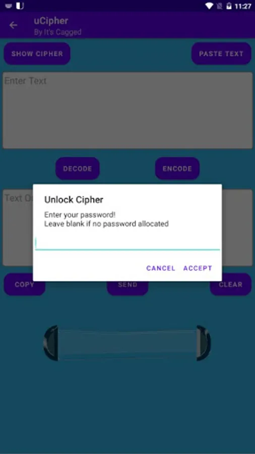 5. You are now able to send encoded messages to one another, copy the encoded text to uCipher. Press the 'Decode' button to read the unencrypted message.