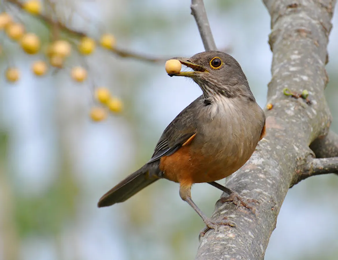 The orange thrush, also known as ponga, red-bellied thrush, gongá thrush, orange thrush and purple-breasted thrush, is a popular bird, cited by several poets as the bird that sings in the season of love, that is, in spring. .
