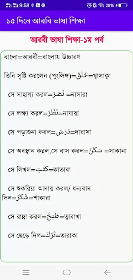 আরবি শিক্ষা arbi shikha বা আরবী ভাষা শিক্ষা learn arabic in bangla আমাদের জন্য অনেক জরুরি যা আমাদেরকে ইসলাম সম্পর্কে এবং কোরআন শিক্ষা Learn Quran সঠিকভাবে জানতে ও বুঝতে সাহায্য করবে। আরবি ভাষা শিক্ষা arbi vasha shikkha এর জন্য আরবি শিক্ষার বই, বাংলা আরবি ভাষা শিক্ষা বই, বাংলায় আরবি ভাষা শিক্ষা ~ Bangla Arbi Sikkha বা আরবি শিক্ষা অডিও অনেক কার্যকারী। আরবী ভাষা শিক্ষা Learn arabic in bnagla বা আরবি শিক্ষা বাংলা সহজভাবে শিখতে বাংলায় আরবি ভাষা শিক্ষা এর জন্য এই বাংলা এপস আরবি ভাষা শিক্ষার বই বাংলা বিশেষ কার্যকারী হবে।